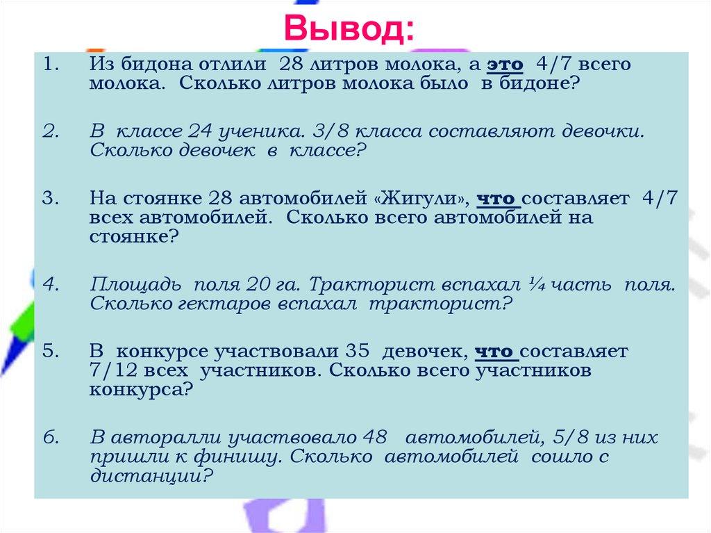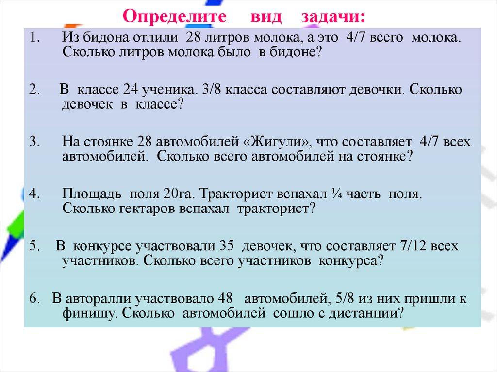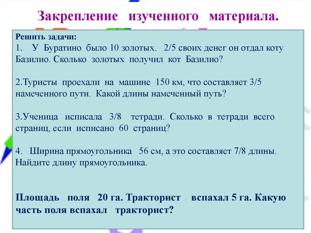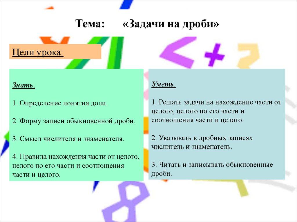 1. Решать задачи на нахождение части от