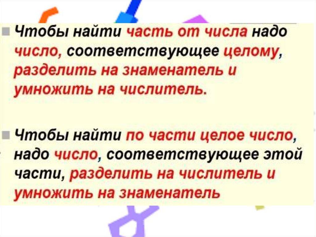 4. Правила нахождения части от целого,