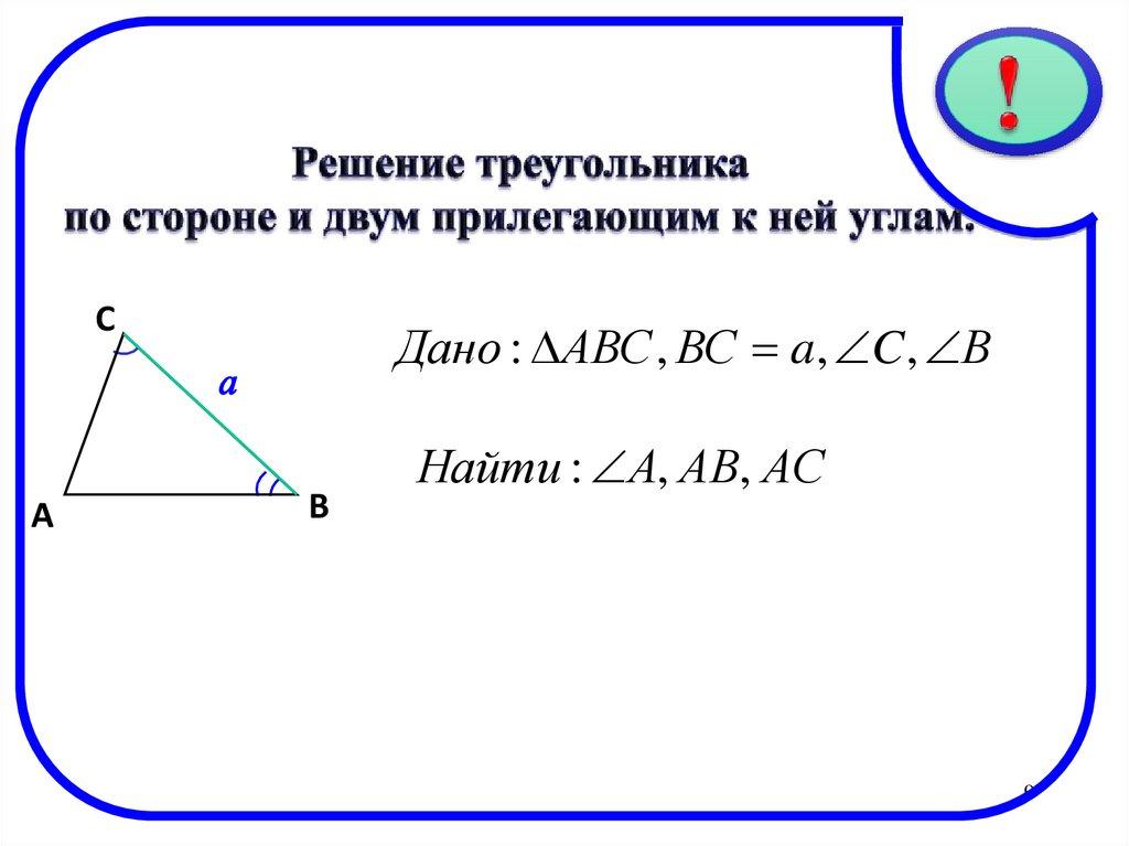 6. Три задачи на решение треугольника