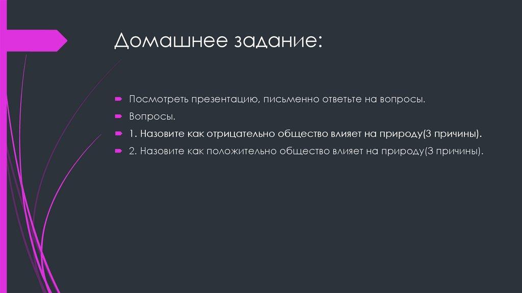 1. Назовите как отрицательно общество влияет на природу(3 причины).