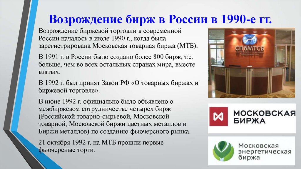 В 1992 г. был принят Закон РФ «О товарных биржах и