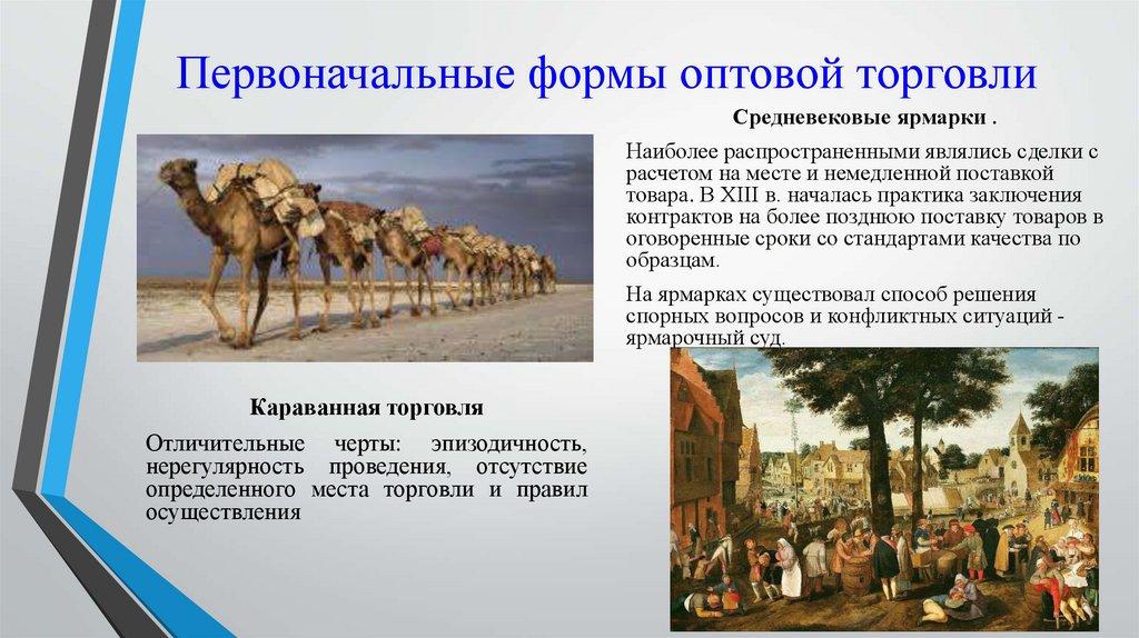 Первоначальные формы оптовой торговлиСредневековые ярмарки .