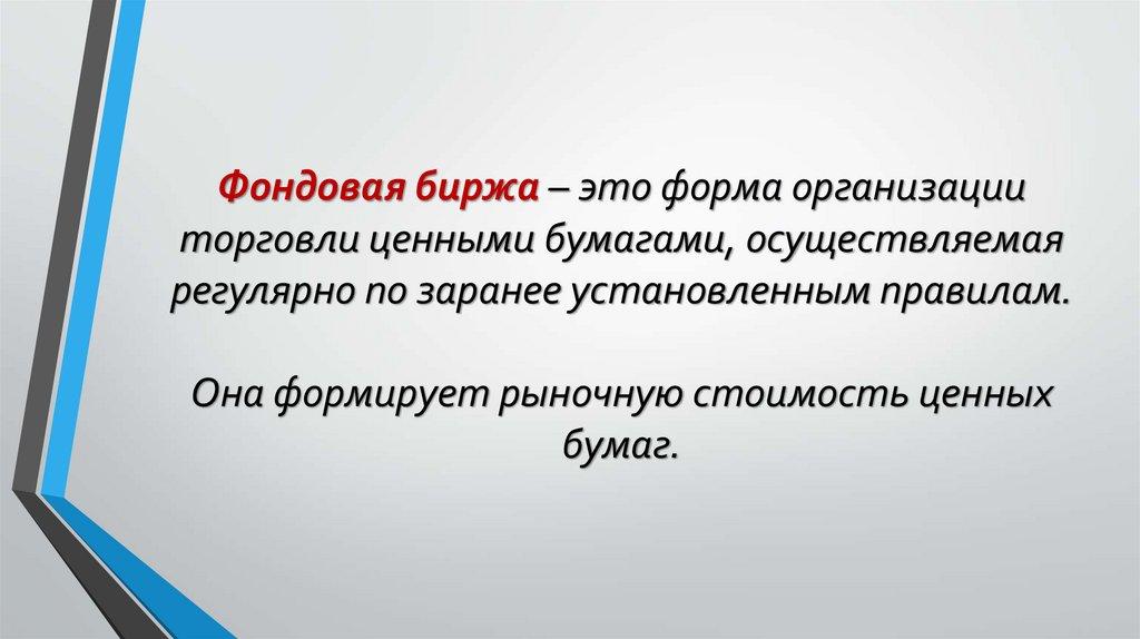Фондовая биржа – это форма организацииторговли ценными бумагами, осуществляемая