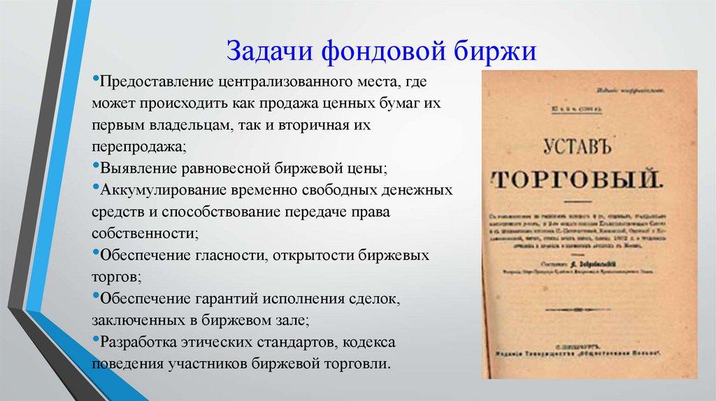 Задачи фондовой биржи•Предоставление централизованного места, где
