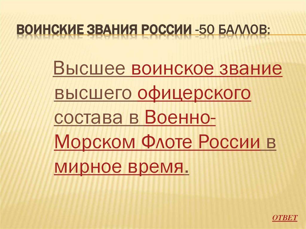 ВОИНСКИЕ ЗВАНИЯ РОССИИ -50 БАЛЛОВ:Высшее воинское звание