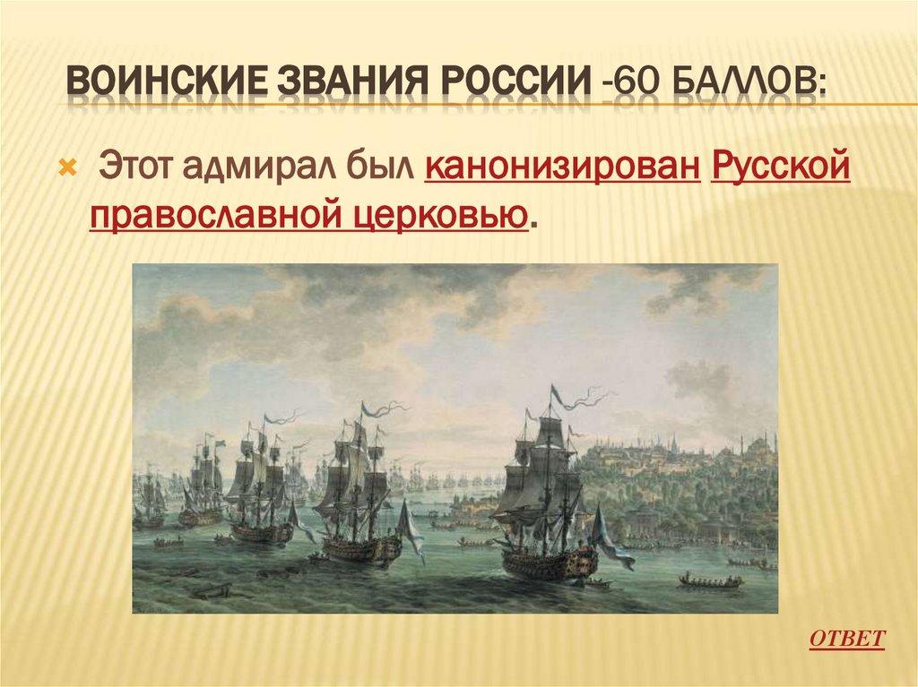 ВОИНСКИЕ ЗВАНИЯ РОССИИ -60 БАЛЛОВ:Этот адмирал был канонизирован Русской