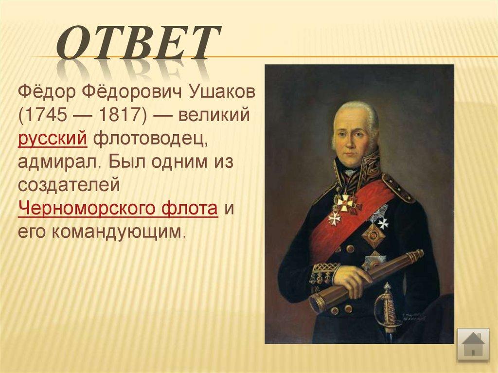ОТВЕТФёдор Фёдорович Ушаков