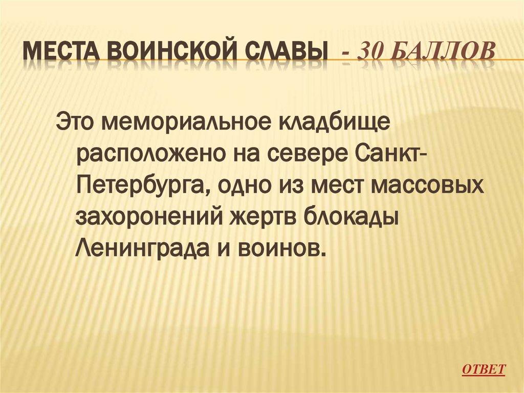 МЕСТА ВОИНСКОЙ СЛАВЫ - 30 БАЛЛОВЭто мемориальное кладбище