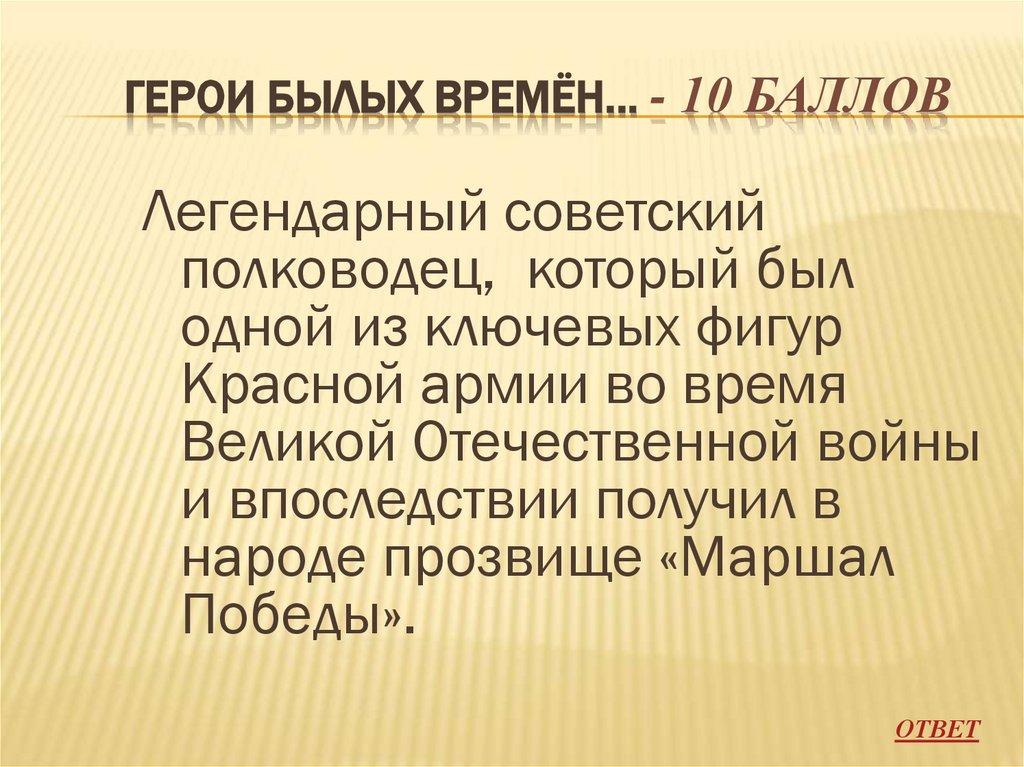 ГЕРОИ БЫЛЫХ ВРЕМЁН… - 10 БАЛЛОВЛегендарный советский