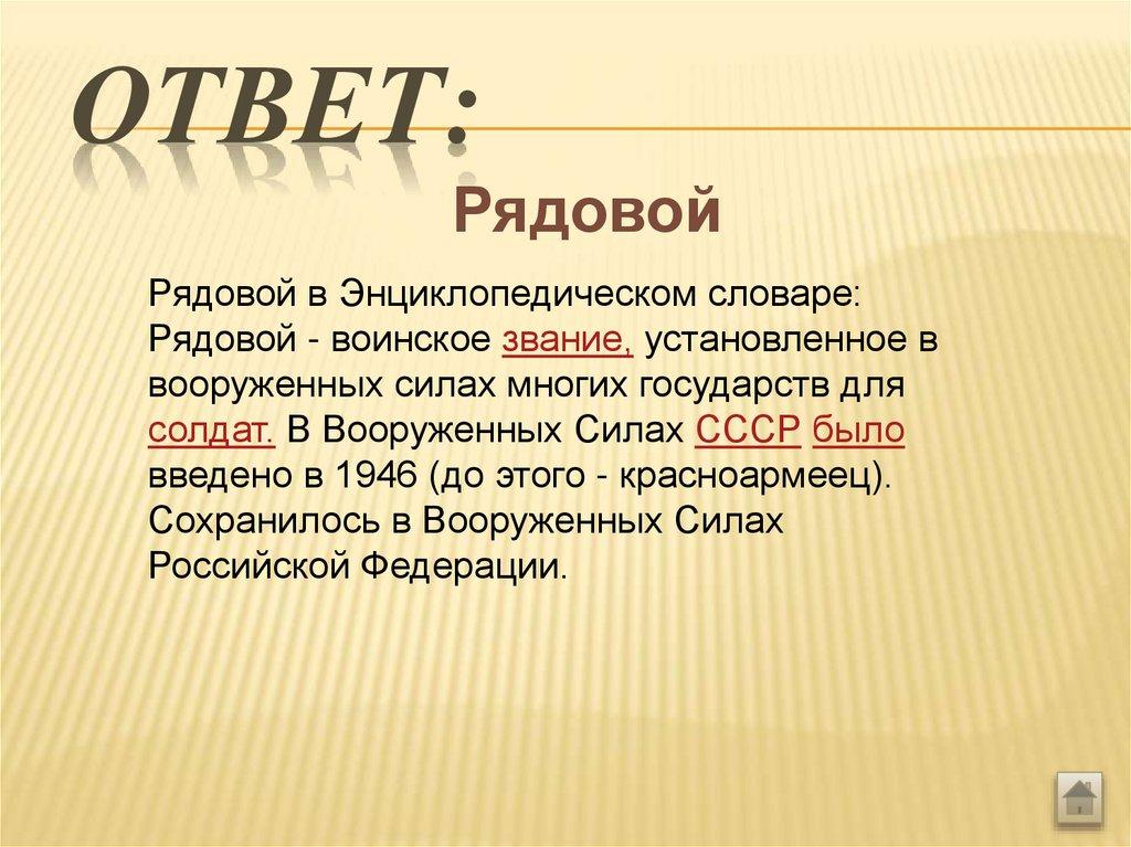 Рядовой в Энциклопедическом словаре: