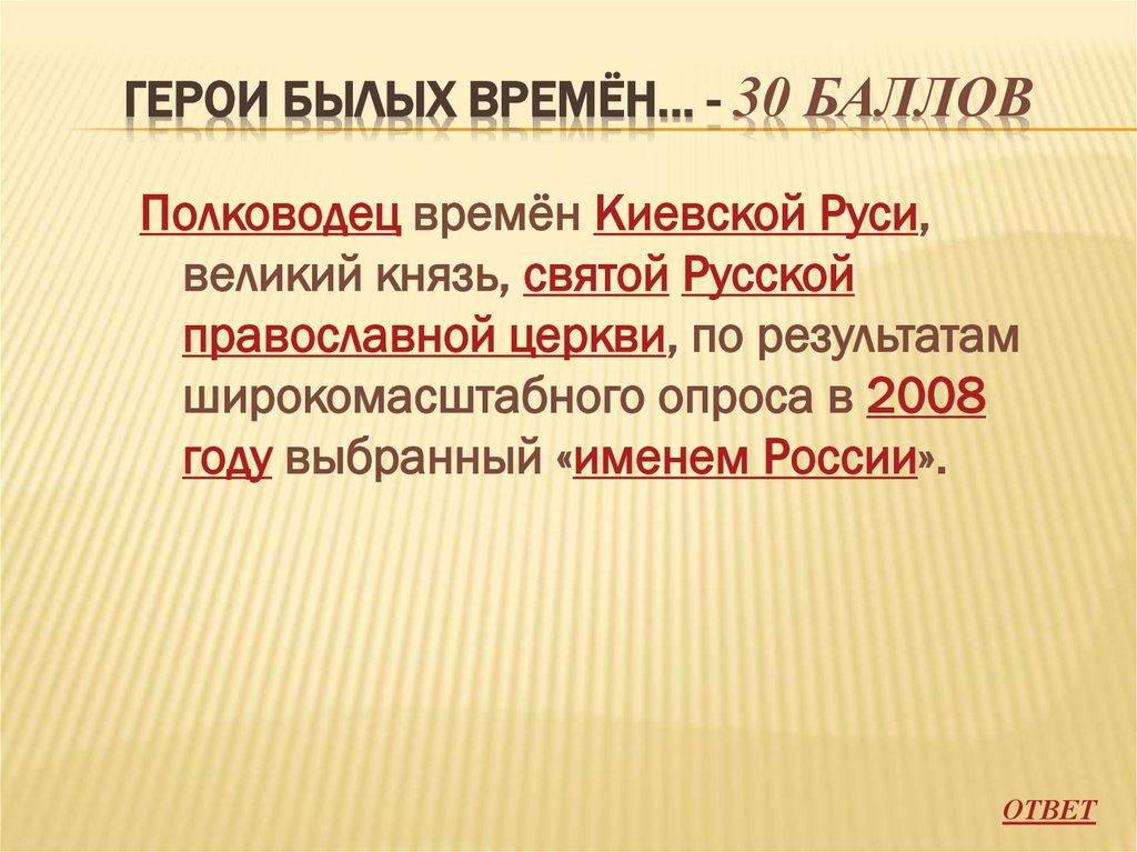ГЕРОИ БЫЛЫХ ВРЕМЁН… - 30 БАЛЛОВПолководец времён Киевской Руси,