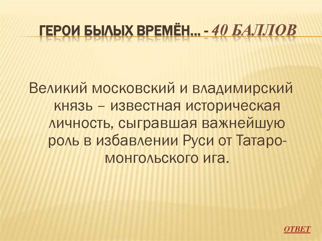 ГЕРОИ БЫЛЫХ ВРЕМЁН… - 40 БАЛЛОВВеликий московский и владимирский