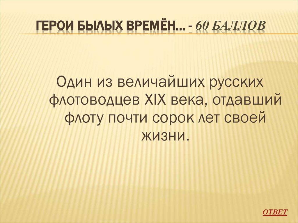 ГЕРОИ БЫЛЫХ ВРЕМЁН… - 60 БАЛЛОВОдин из величайших русских
