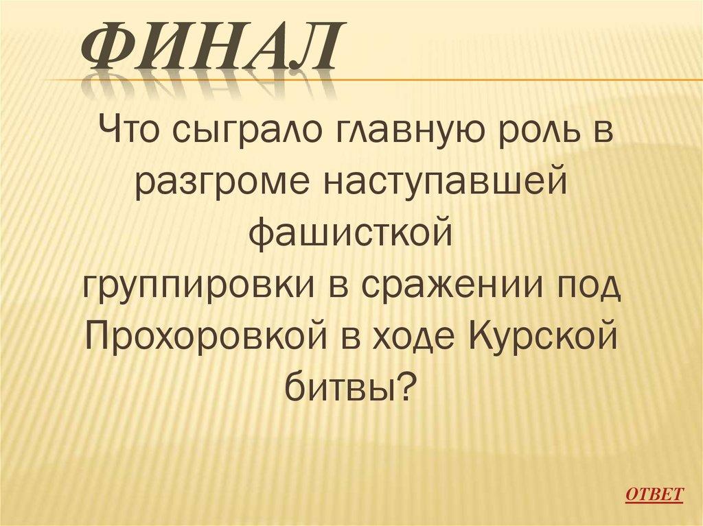 ФИНАЛЧто сыграло главную роль в