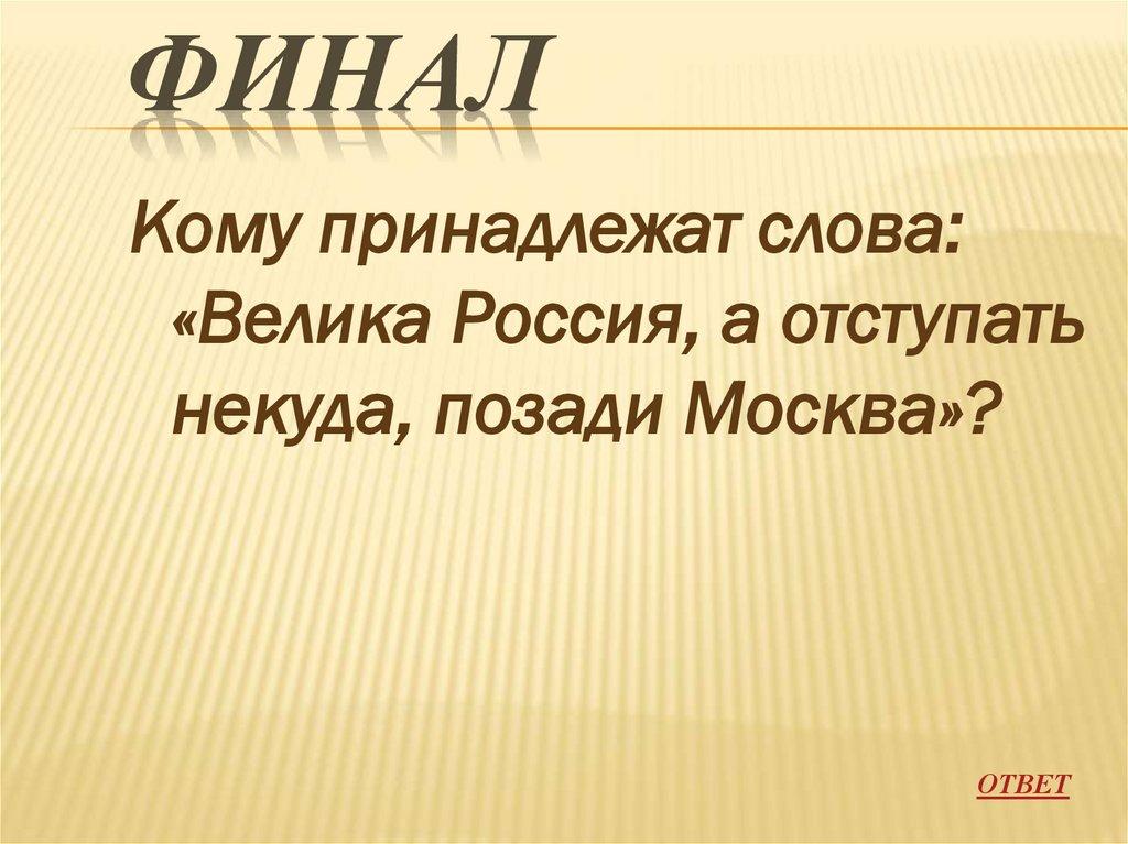 некуда, позади Москва»?