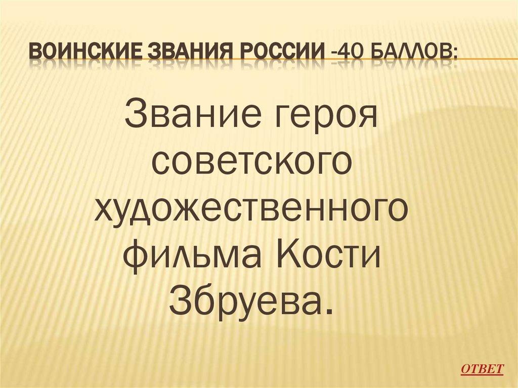 ВОИНСКИЕ ЗВАНИЯ РОССИИ -40 БАЛЛОВ:Звание героя