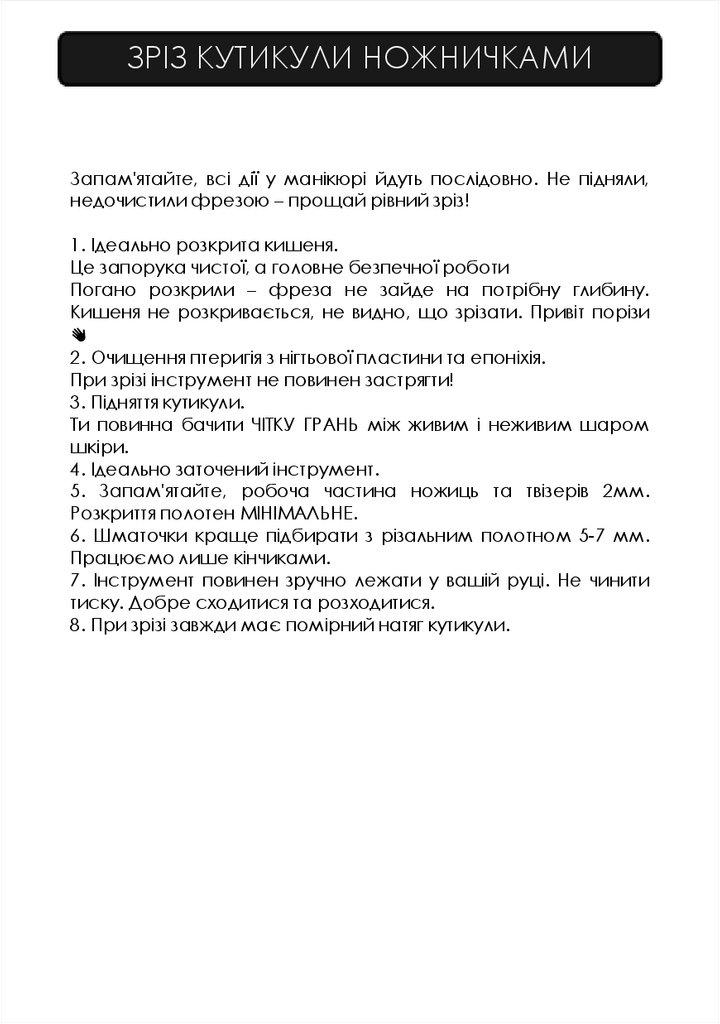 ЗРІЗ КУТИКУЛИ НОЖНИЧКАМИЗапам'ятайте, всі дії у манікюрі йдуть послідовно. Не підняли,