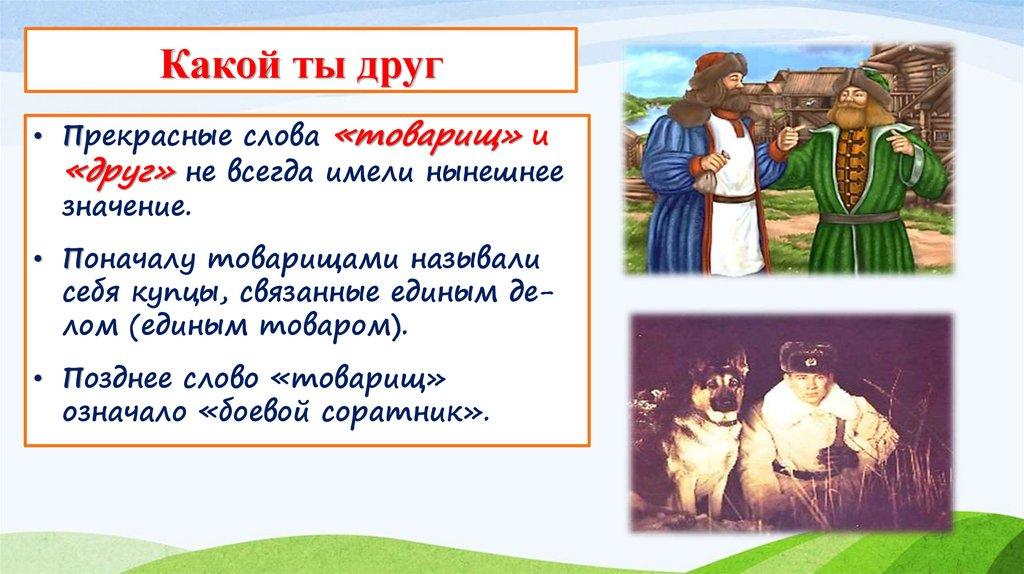 • Слово «друг» произошло от слова«другой», т.е. не такой как ты.