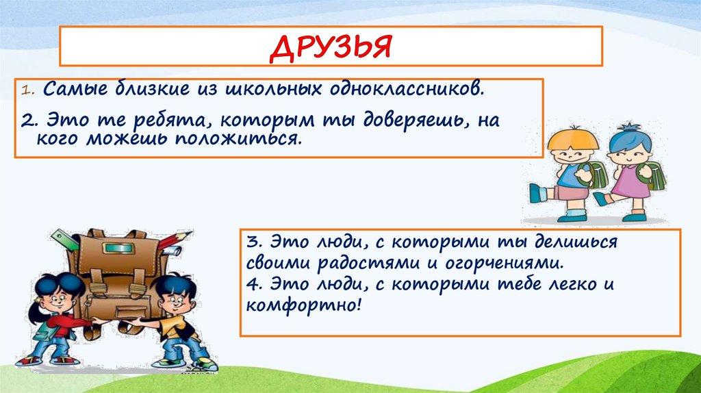 1. Самые близкие из школьных одноклассников.2. Это те ребята, которым ты доверяешь, на