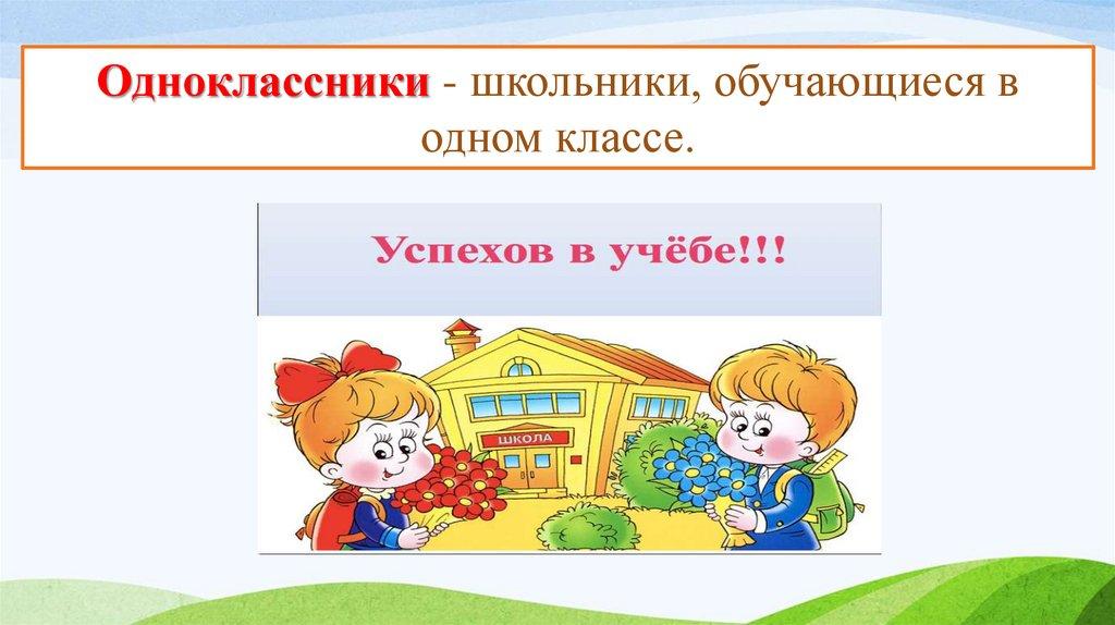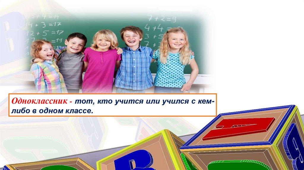 Одноклассник - тот, кто учится или учился с кемлибо в одном классе.9.
