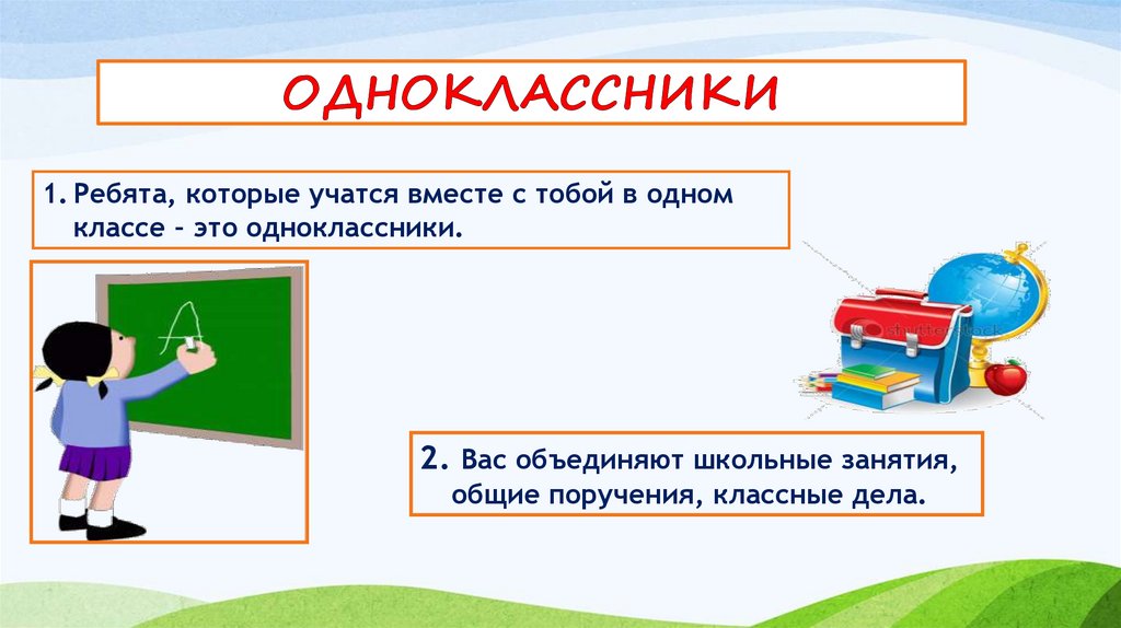 1. Ребята, которые учатся вместе с тобой в одномклассе – это одноклассники.