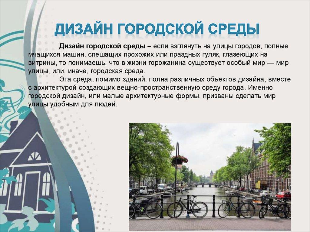 Дизайн городской среды – если взглянуть на улицы городов, полныемчащихся машин, спешащих прохожих или праздных гуляк, глазеющих на