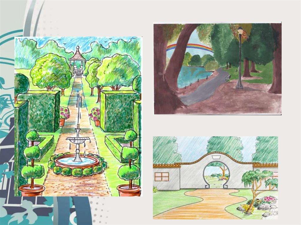 Выполнить эскиз проекта парковой зоны сиспользованием МАФ (малых архитектурных форм)