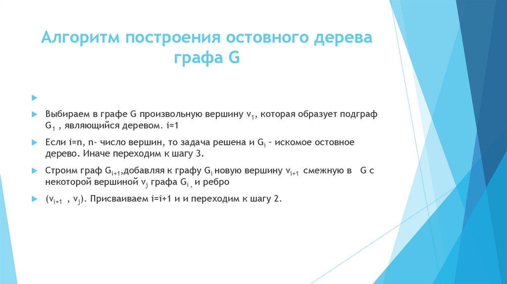 Алгоритм построения остовного дереваграфа G