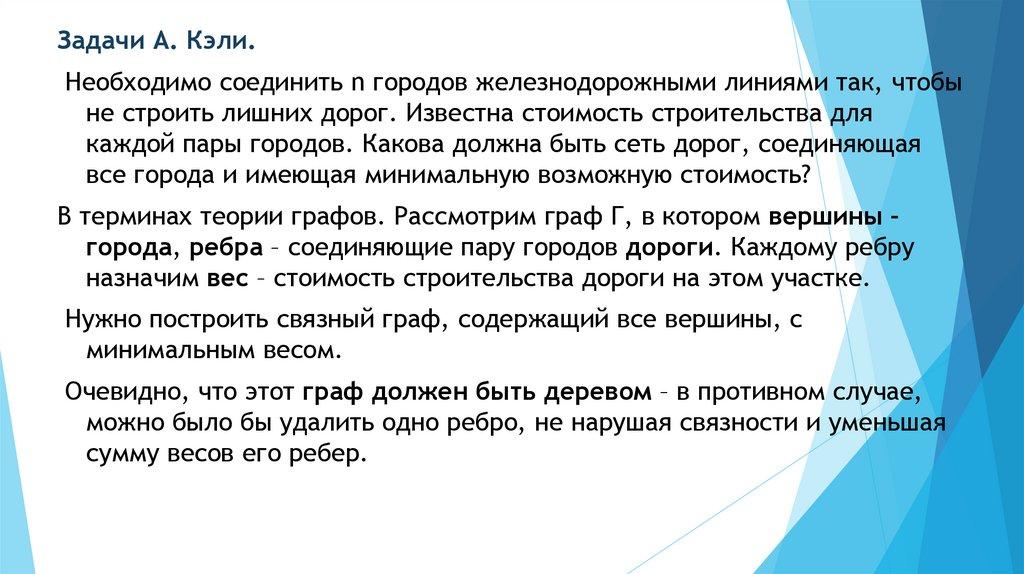 Задачи А. Кэли.Необходимо соединить n городов железнодорожными линиями так, чтобы