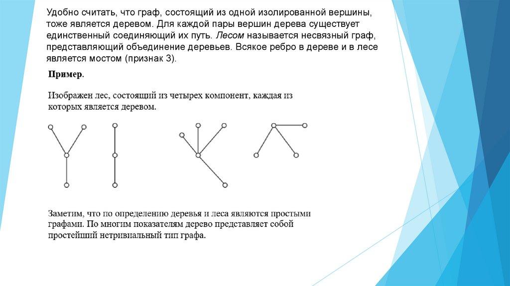 единственный соединяющий их путь. Лесом называется несвязный граф,