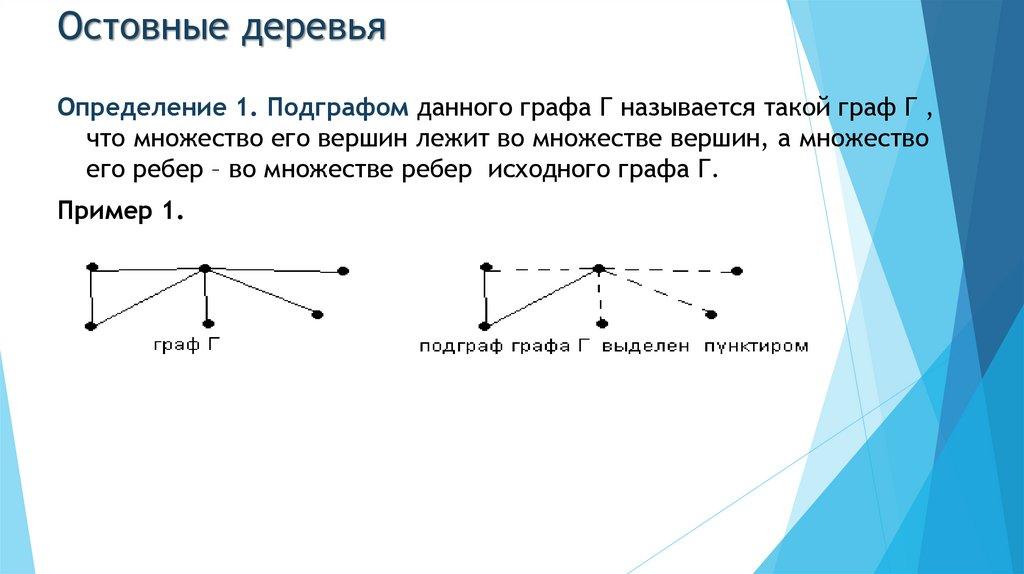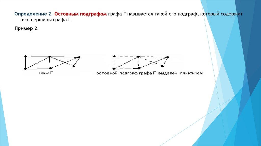 Определение 2. Остовным подграфом графа Г называется такой его подграф, который содержитвсе вершины графа Г.