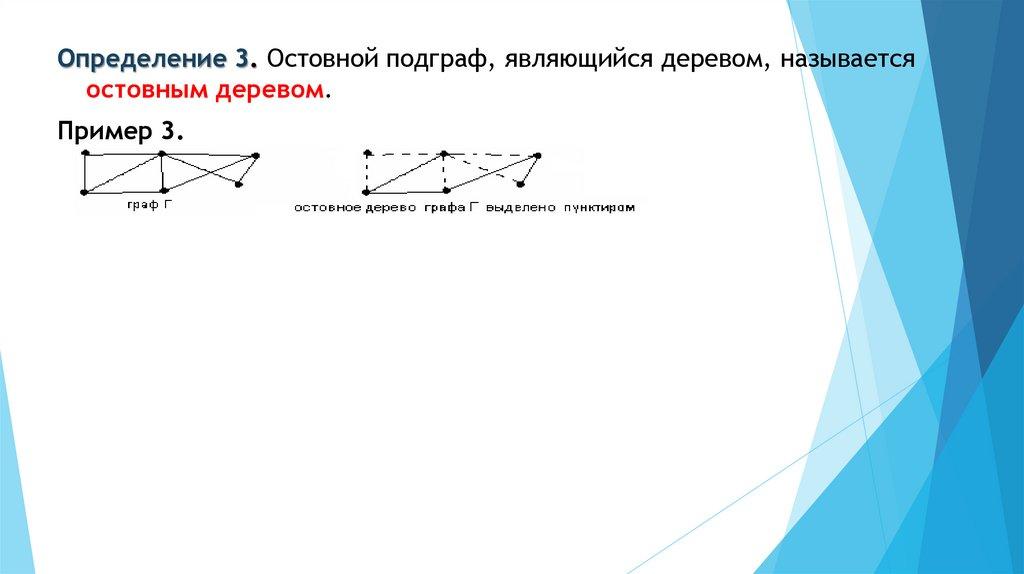 Определение 3. Остовной подграф, являющийся деревом, называетсяостовным деревом.