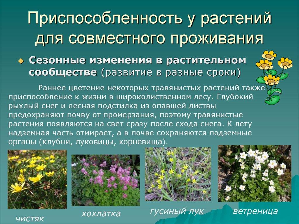Сезонные изменения в растительномсообществе (развитие в разные сроки)
