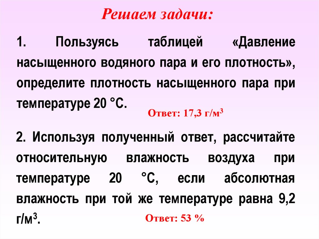 • Определите относительную влажность воздуха,