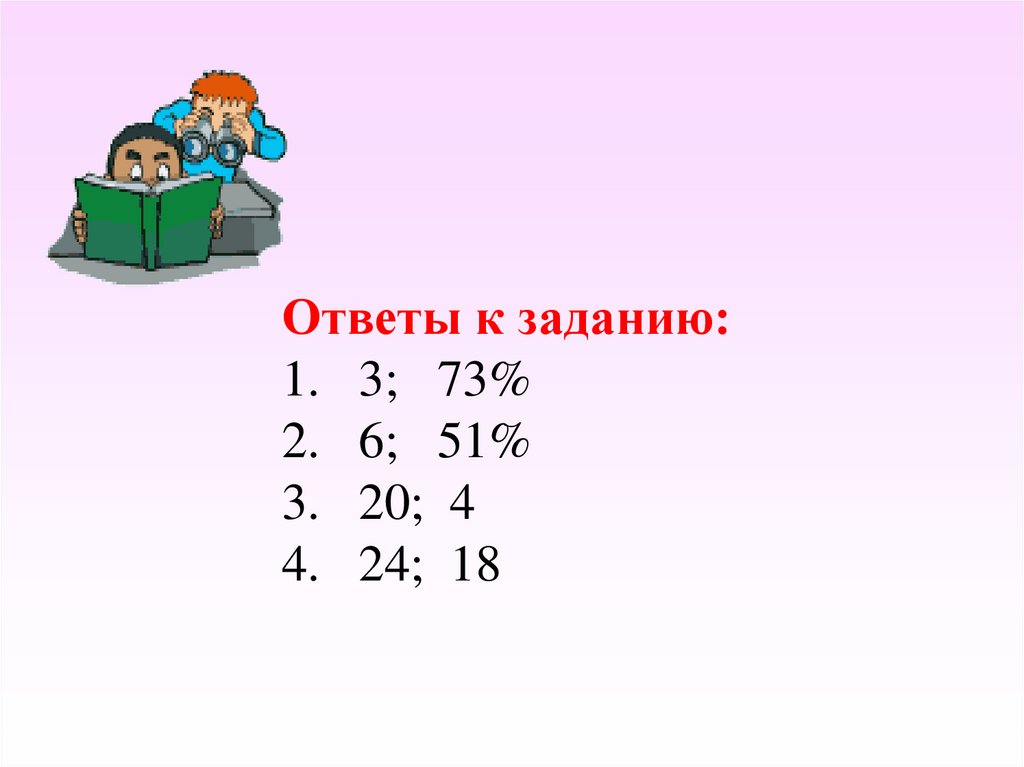 Ответы к заданию:1. 3; 73%