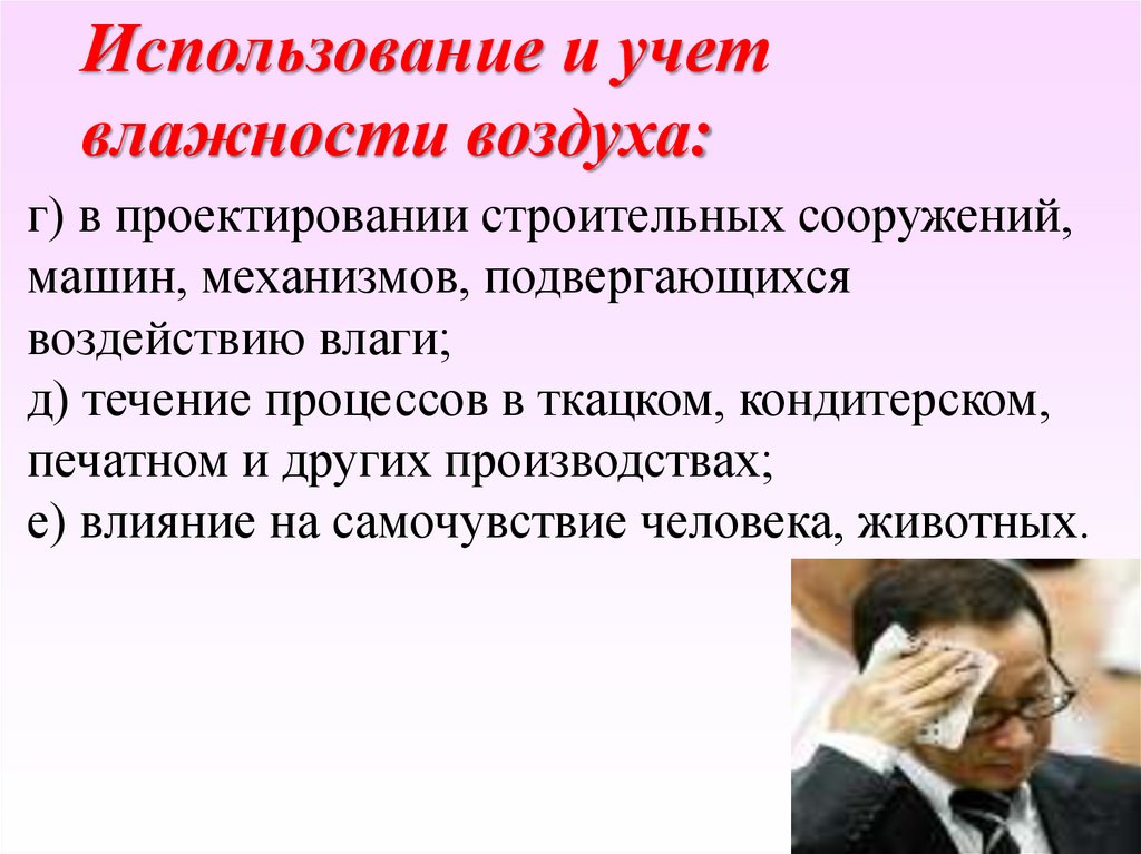Использование и учетвлажности воздуха: