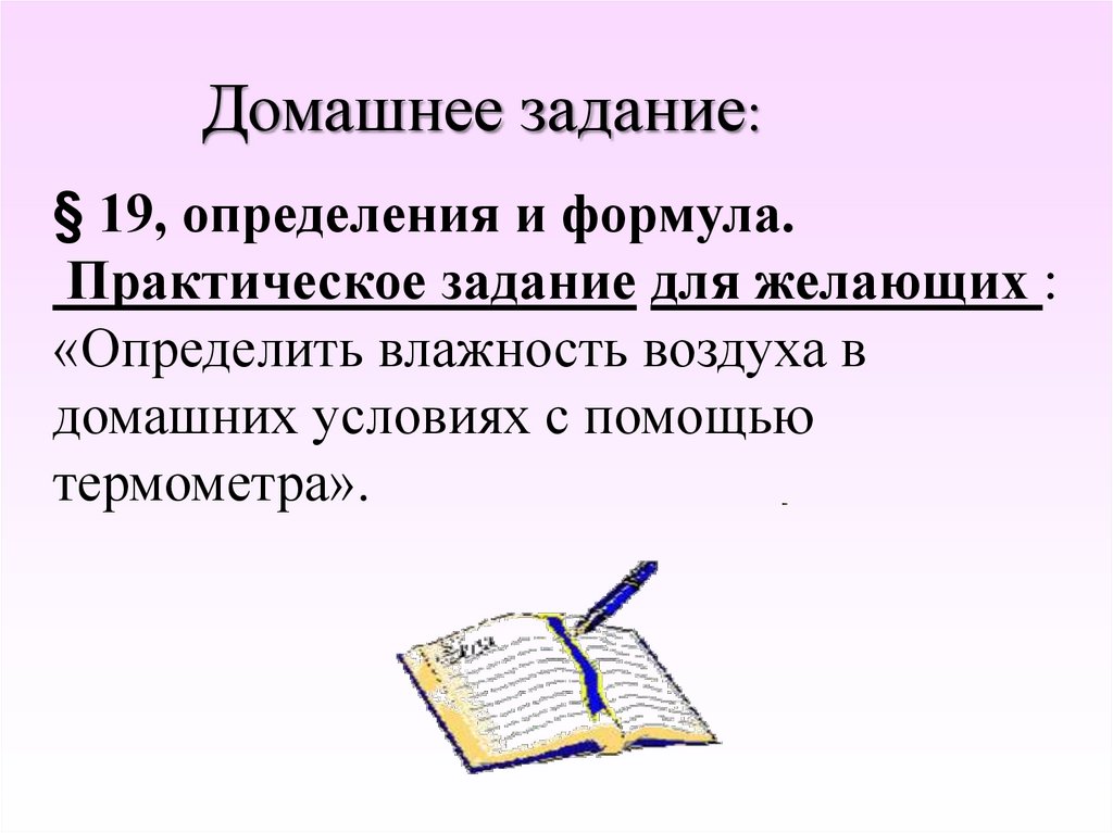 Домашнее задание:§ 19, определения и формула.