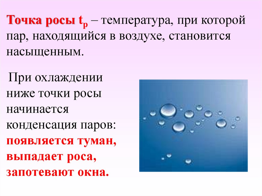 Точка росы tp – температура, при которойпар, находящийся в воздухе, становится