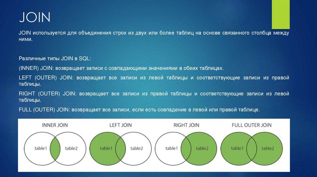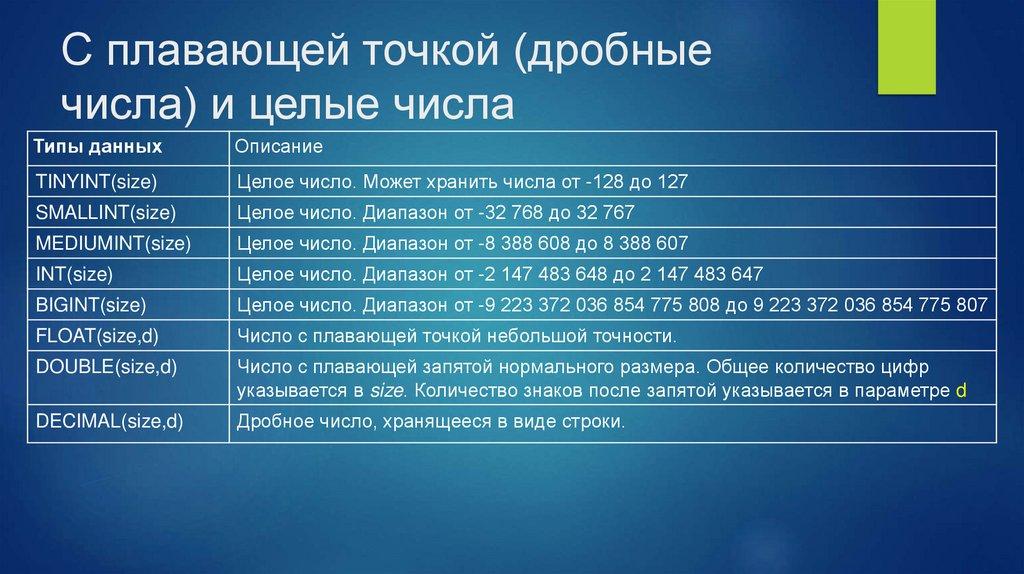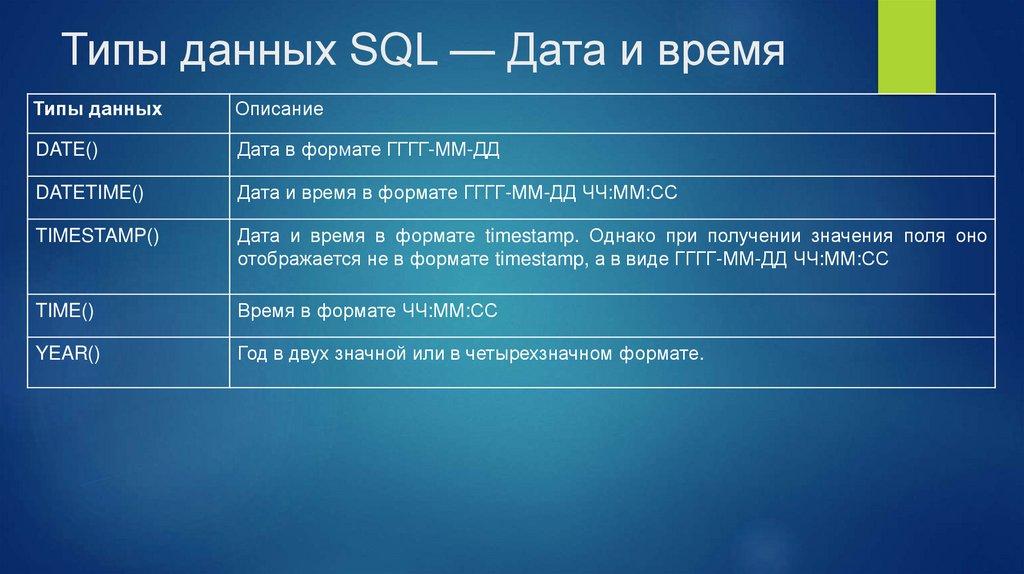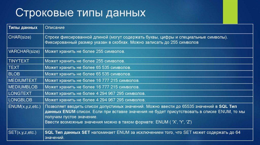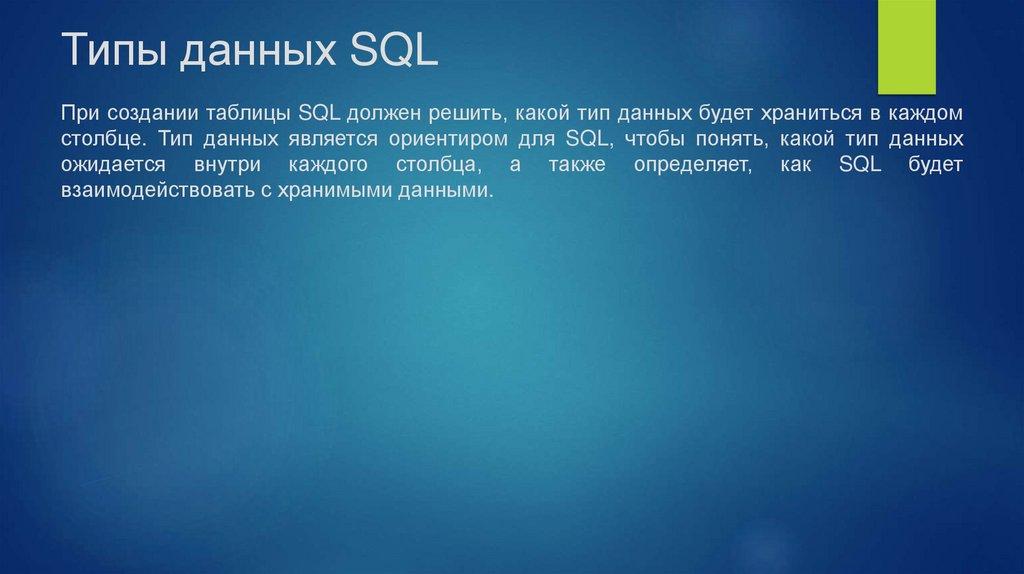 столбце. Тип данных является ориентиром для SQL, чтобы понять, какой тип данных