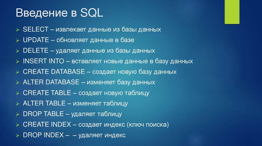 Введение в SQLSELECT – извлекает данные из базы данных