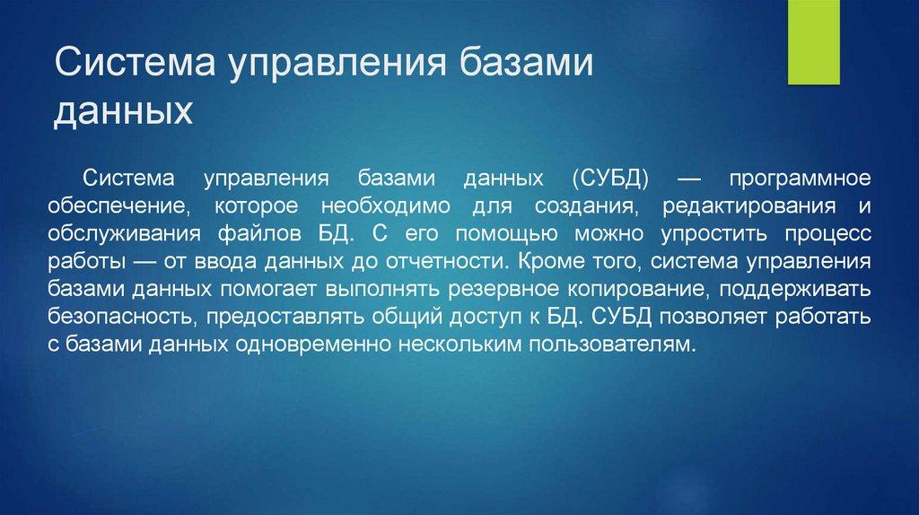 Система управления базами данных (СУБД) — программное