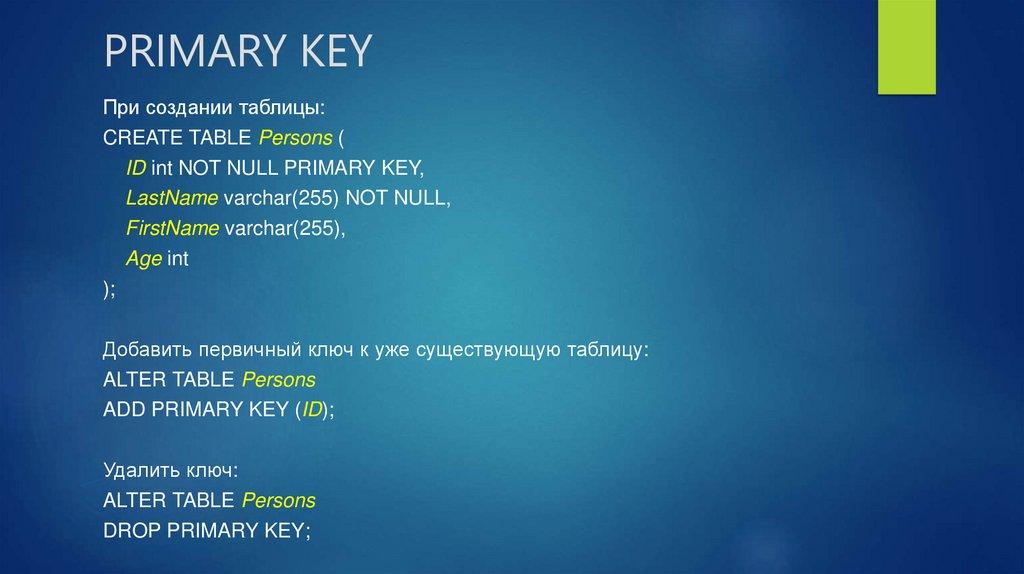 PRIMARY KEYПри создании таблицы: