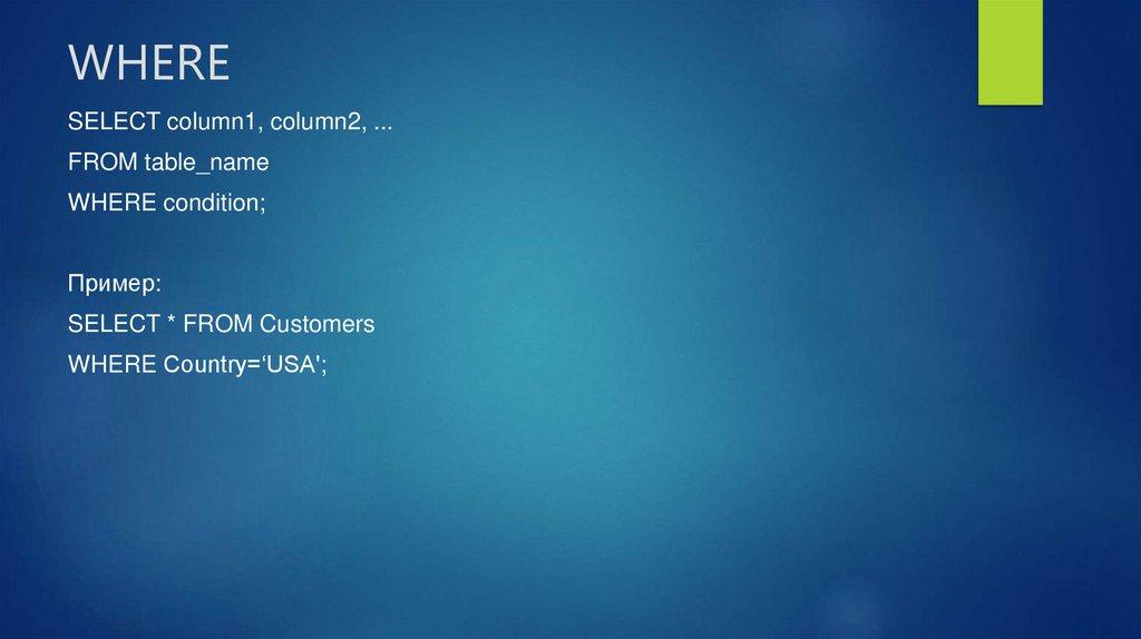SELECT — выбор данных в соответствии с условием