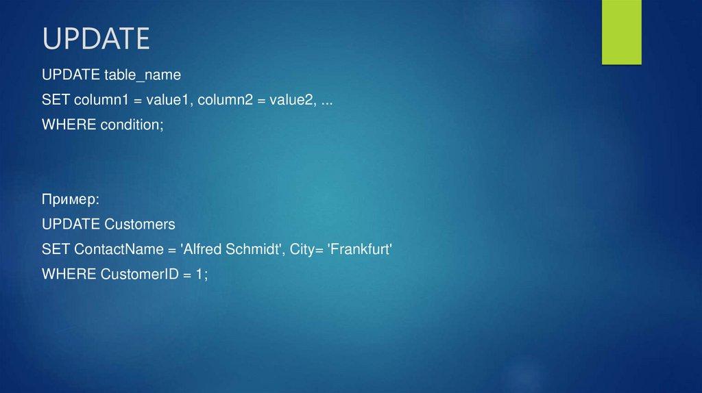 UPDATE — изменение существующих данных