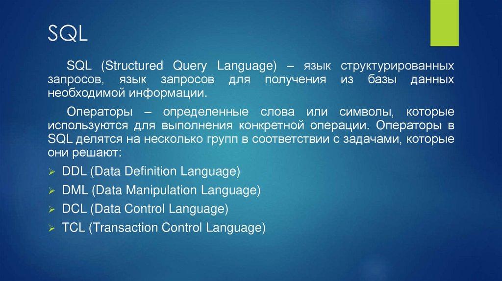SQLSQL (Structured Query Language) – язык структурированных