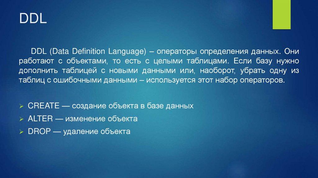 DDLDDL (Data Definition Language) – операторы определения данных. Они