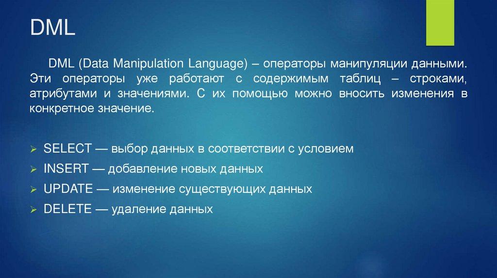 DMLDML (Data Manipulation Language) – операторы манипуляции данными.