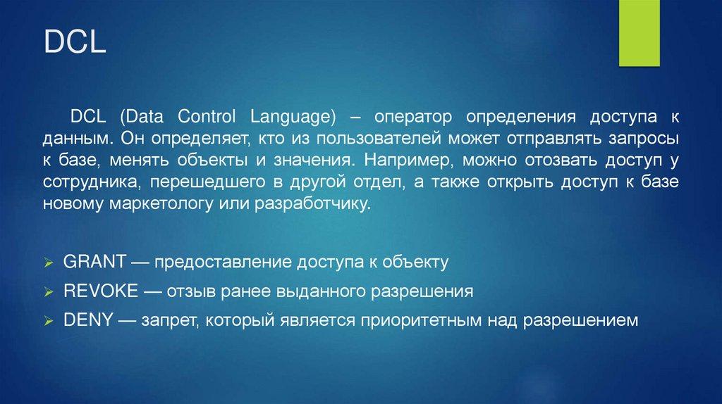 DCLDCL (Data Control Language) – оператор определения доступа к