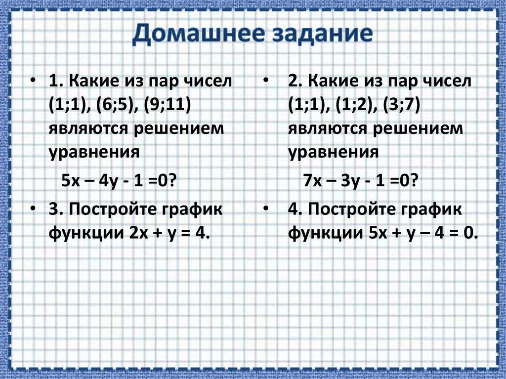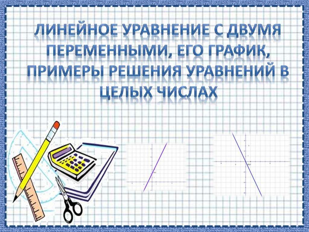 Линейное уравнение с двумя переменными, его график, примеры решения уравнений в целых числах