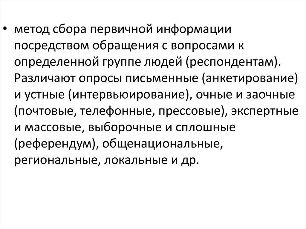 • метод сбора первичной информации,осуществляемый путем регистрации и фиксации